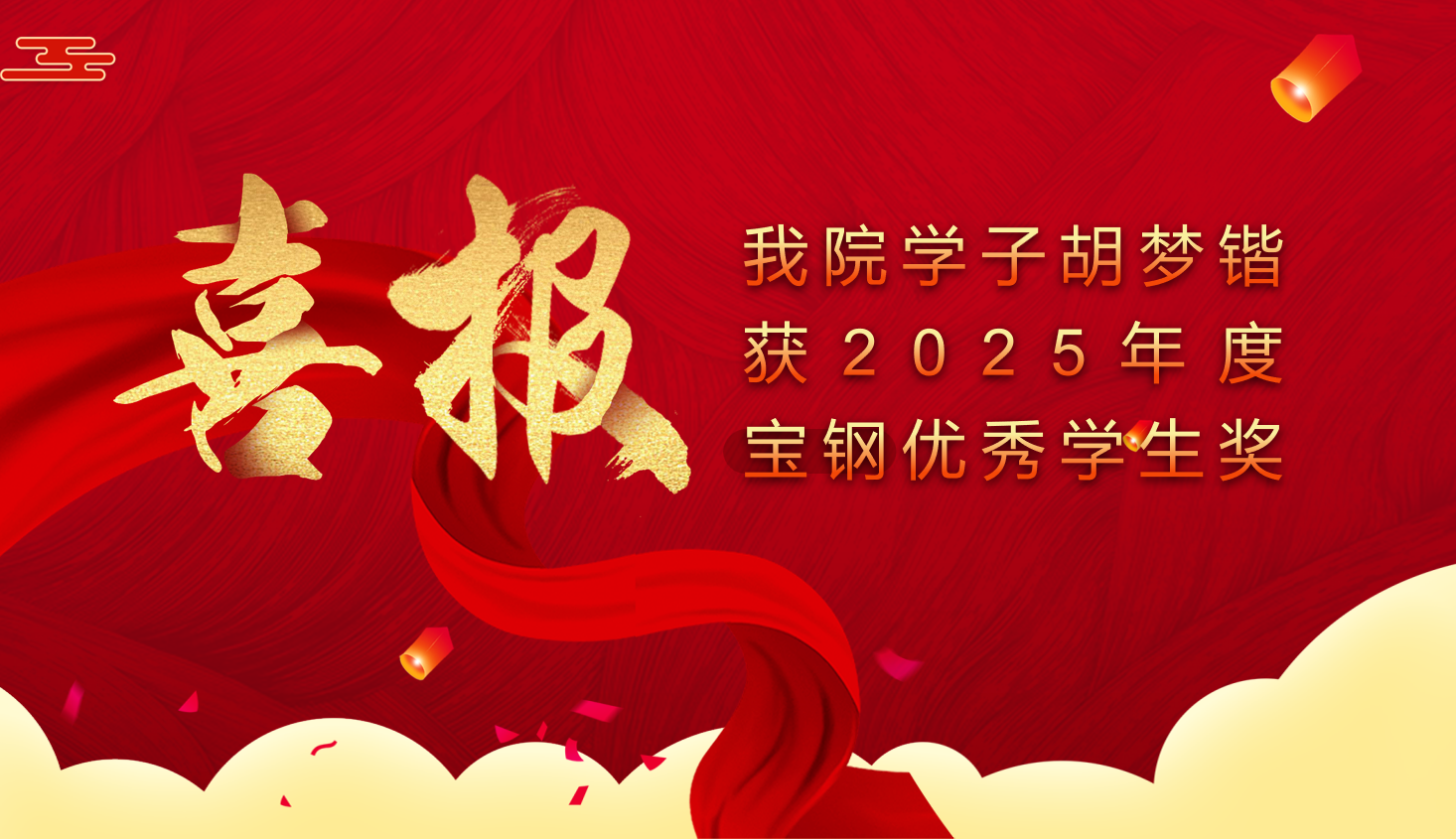 喜报:国产探花 学子胡梦锴获2025年度宝钢优秀学生奖