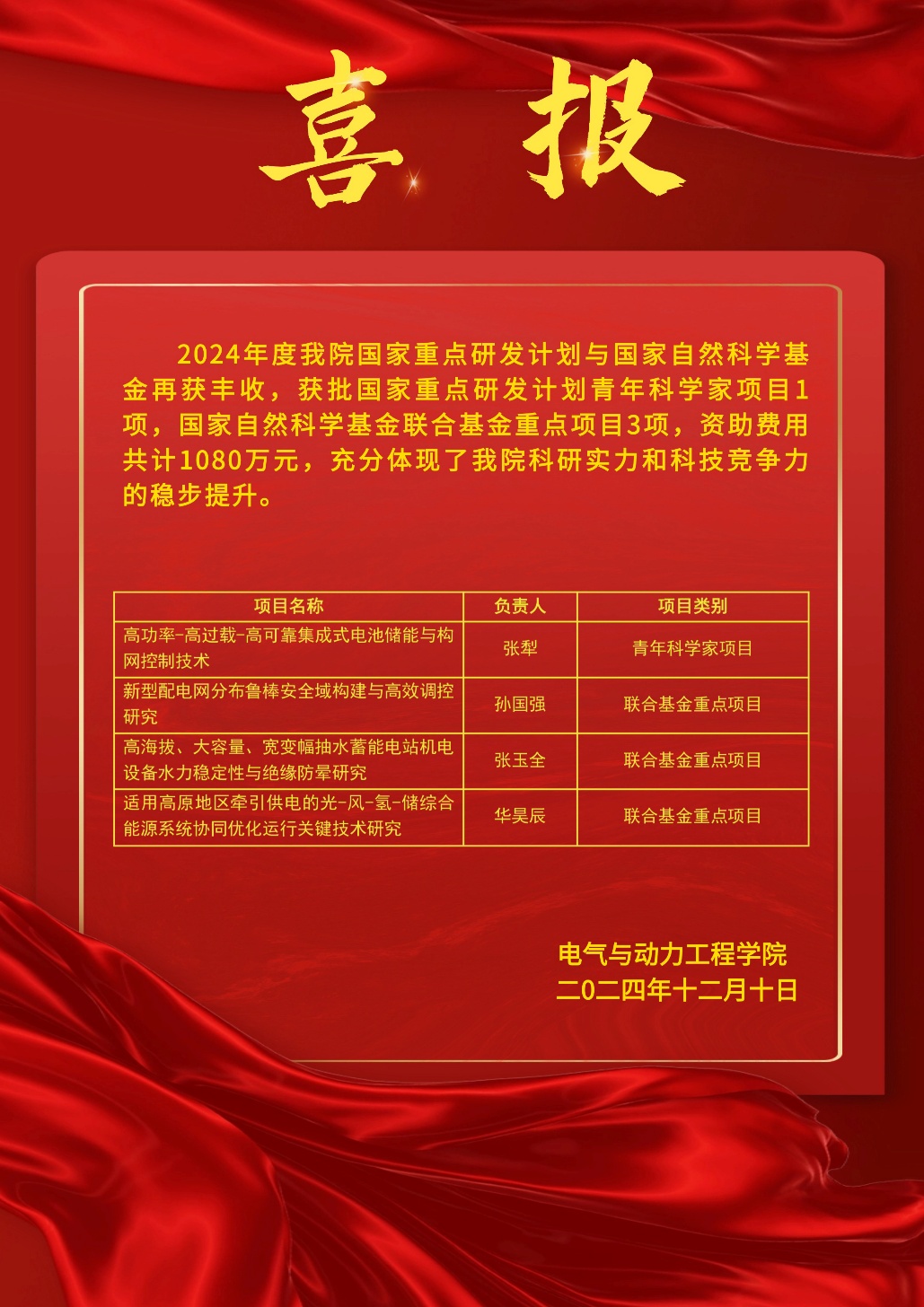 2024年度国产探花 国家重点研发计划与国家自然科学基金再获丰收,获批国家重点研发计划青年科学家项目1项,国家自然科学基金联合基金重点项目3项,资助费用共计1080万元,充分体现了国产探花 科研实力和科技竞争力的稳步提升。