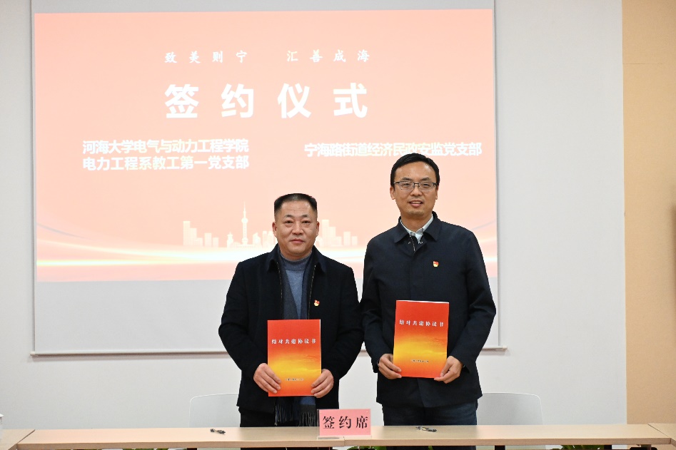 12月10日,电力工程系教工第一党支部赴宁海路街道党群服务中心,与宁海路街道经济民政安监党支部结对共建。副院长孙国强、电力工程系教工第一党支部书记刘皓明等支部党员参加了共建。