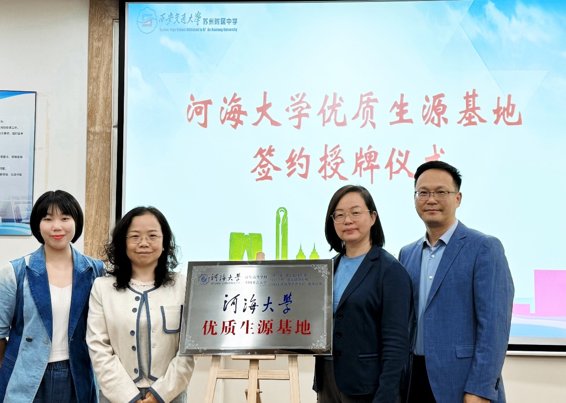 为进一步推动“高高对接”,落实“合作共享,协同发展”双高合作发展创新理念,建立高质量人才培养的长效机制,4月24-25日,国产探花 党委副书记张炜,辅导员雷镕甄、金戈先后走访了苏州工业园区星海实验高级中学、西安交通大学苏州附属中学、江苏省木渎高级中学,举行优质生源基地签约授牌仪式。