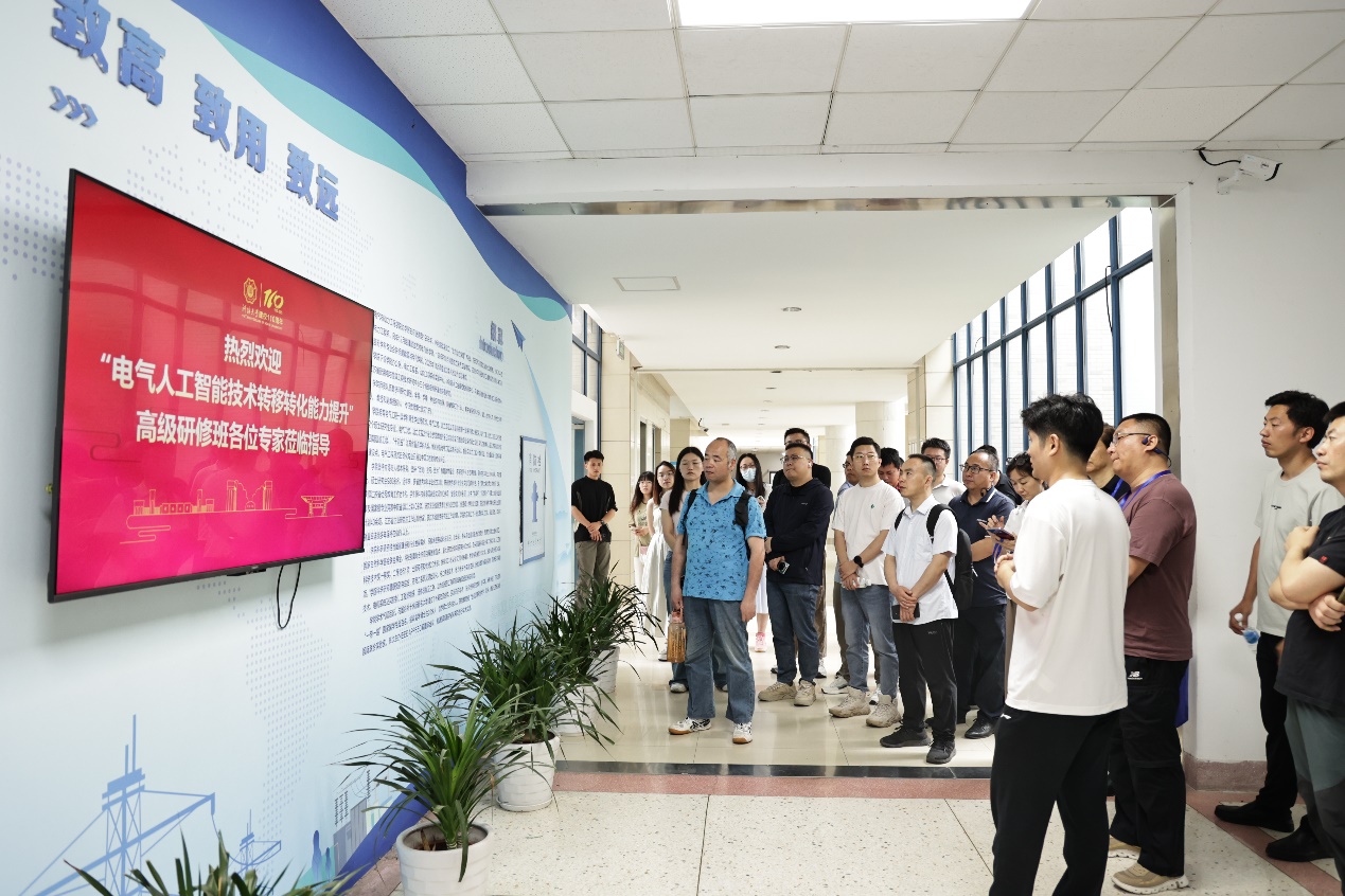 “电气人工智能技术转移转化能力提升”高级研修班是由中国电工技术学会承办的培训项目,主要面向全国从事电气人工智能及相关领域科学研究、设计、生产、制造、应用、管理以及技术转移转化等工作的具有中级及以上技术职称(或同等水平)的专业技术人员和管理人员,以及基层一线专业技术骨干。活动中,研修班成员参观了学院文化长廊,重点考察电气工程专业各个实验室与研究生工作室,并与国产探花 专任教师开展深入交流。他们对我校电气工程学科在电力系统、电力电子等领域取得的科研成果给予了高度评价,并期待未来有机会到国产探花 开展进一步学习与交流。