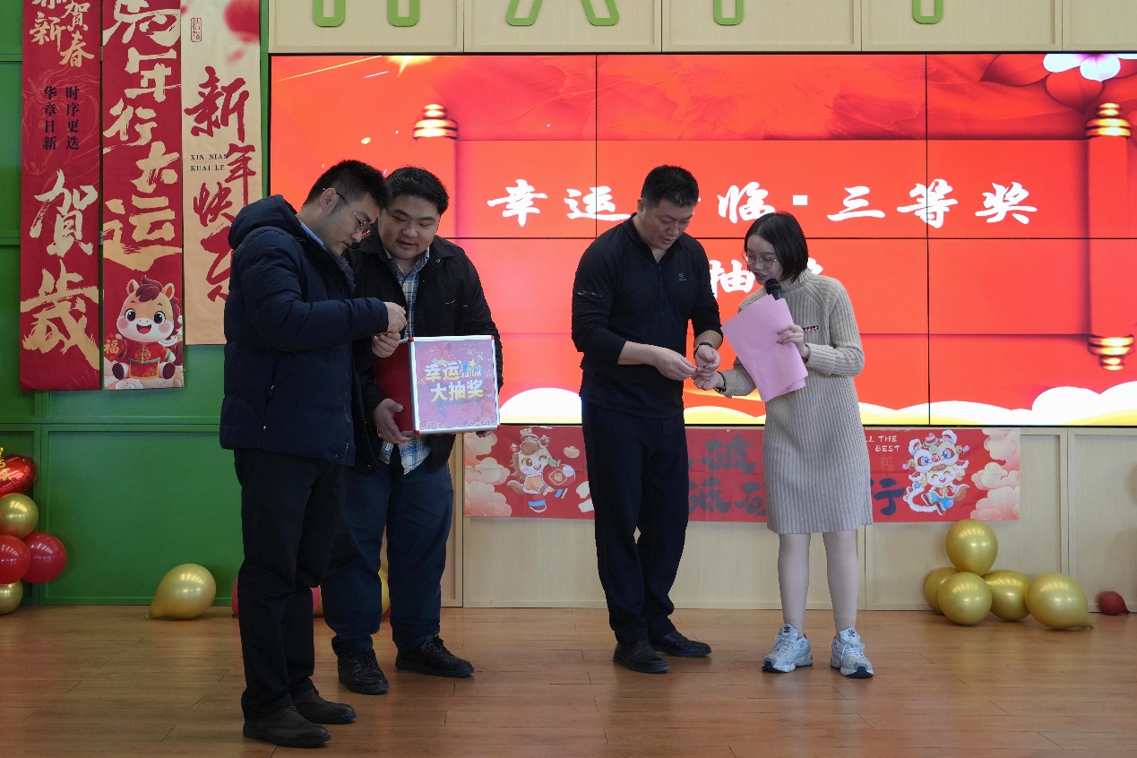 趣味游戏过后,激动人心的抽奖环节如期而至。随着三等奖、二等奖、一等奖依次揭晓,现场惊喜不断、喝彩连连,一份份精心准备的礼品承载着学院对教职工的暖心关怀,将节日氛围推向高潮。